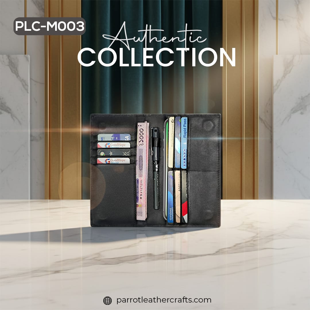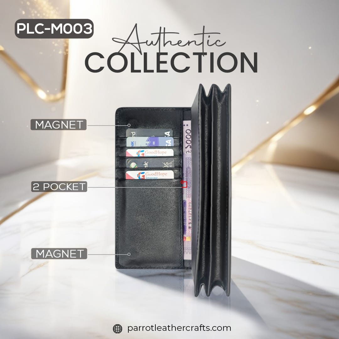 Redefine how you carry your essentials with the PLC-M003 long wallet for men from Parrot Leather Crafts. Handcrafted from top-grade genuine leather, this sleek and spacious wallet features a secure magnetic closure and a built-in pen holder, making it the perfect blend of utility and high-end fashion for the modern gentleman.